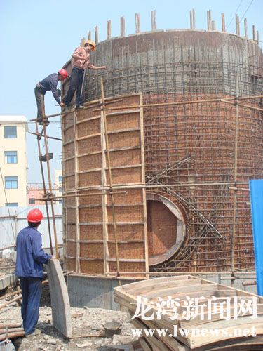 东片污水管网工程是我区城市建设“五个一”工程中“一网”的关键工程,也是我区民生工程推进年活动的一项重要内容。2007年,建成主干管污水管道5公里,截污管65公里。2008年,将计划投资1.5亿元,抓紧建设完成滨海大道主干管和永中、海滨、永兴、海城、瑶溪、沙城、天河等地的污水支管纳管建设,朝着“建一条管道,联一张网络,成一个片区”的目标迈进,尽可能多收集达标的污水。图为污水管网工程沉井建设现场。 余海敏摄