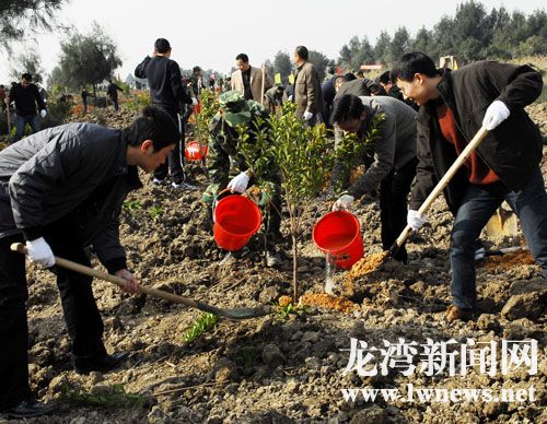 春风拂面万物苏,正是植树好时节。3月3日一大早,市领导邵占维、包哲东、赵一德等在区领导王祖焕、陈玲玲等陪同下,来到永强堤塘海滨段扬镐挥锹,为防护林添新绿,拉开了今年全市义务植树活动的序幕。 当天的永强堤塘海滨段植树点,呈现出一派生机勃勃的春日景象。人们锹土扶苗填坑,到处是忙碌的身影,忙碌中欢声笑语不断。上午8时许,市、区领导们一来到现场,立即投入到植树劳动中,握着铁锹用力挖坑,小心翼翼地栽下树苗,细心均匀地培土。大家主动分工,握锹的握锹,浇水的浇水,填土的填土,一株株树苗很快被植入坑中,一片片新植的小树林也悄然出现。一个多小时过后,在长约2公里的沿海防护林基干林带上种植了榕树、夹竹桃、木麻黄等树苗3000多株。据介绍,这些树苗品种都是防洪抗灾性能比较强的树种,也是容易生长的树种,预计3年后,这段堤塘就成了一片绿阴。 温州市和我区部分机关干部、部分驻温部队官兵等500多人参加了此次义务植树活动。 另悉,3月12日是第29个全民义务植树节。今年的植树节,将以“倡导生态文明,共建和谐家园”为主题,要求机关干部要义务植树进街道社区、下乡镇村庄,加快城市社区环境改造和新农村环境绿化美化。(徐华东)