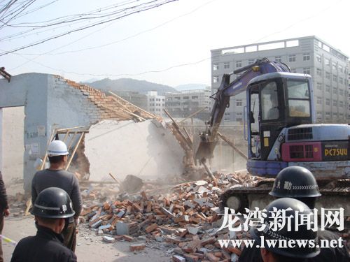 图为拆除状元镇石坦北岸沿河的违章建筑。余海敏摄
