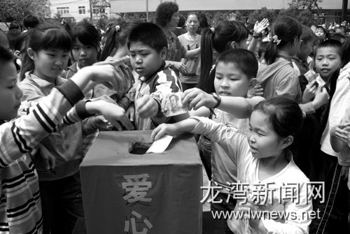 图为永兴一小学生踊跃捐款献爱心。黄静摄
