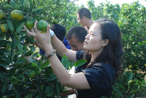 进入深秋,正是“灵昆蜜桔”开始采摘上市的时节。今年的灵昆蜜桔除了大量“飘洋过海”出口以外,还结合农家乐推出自助采摘项目。据了解,“灵昆蜜桔”以酸甜适中、肉质脆嫩、清香爽口、化渣性好著称,一直深受广大消费者青睐。图为市民在采摘蜜桔。叶康远摄