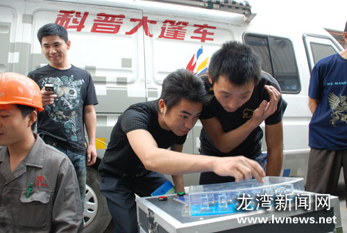 日前,我市科普大篷车首次开进华迪钢业集团,一场科技“盛宴”让员工们大开眼界。据介绍,科普大篷车进企业是龙湾科普宣传的首次尝试,下一步,我区将计划让更多企业员工见识到科学技术创造的无穷魅力。图为员工动手尝试操作试验。叶康远摄