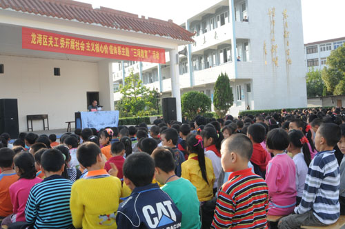 ▲近日,区关工委精心组织8位“五老”宣讲员深入学校、社区、企业,对青少年、青年职工广泛开展社会主义核心价值体系宣讲活动,图为老教师为海滨三小民工子弟学校学生上课的情景。龙关摄