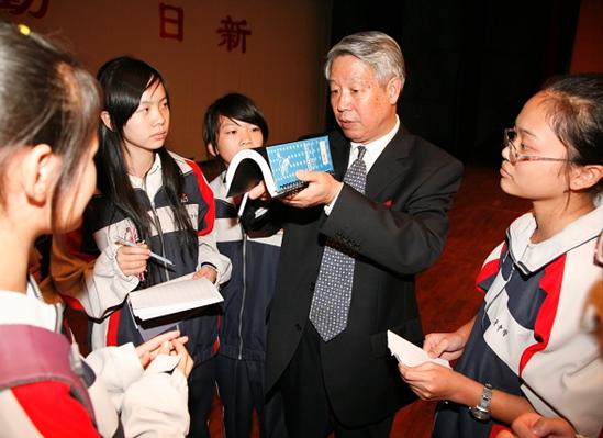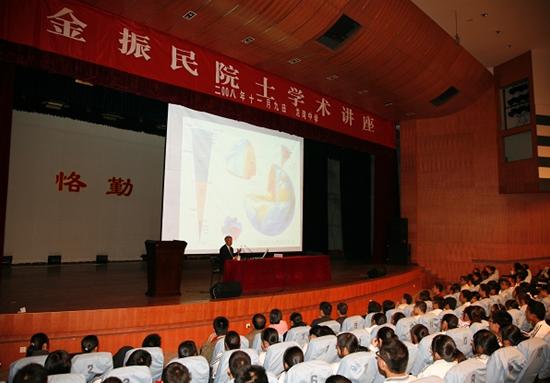 11月9日下午,龙湾中学剧院里座无虚席,该校名誉校长、中国科学院院士、中国地质大学博士生导师金振民教授的《汶川大地震》的学术讲座深深吸引了在座的每一位老师和同学。 金教授在讲座开始前的致辞中说道,此次回温是来参加第二届世界温州人大会,作为龙湾中学的名誉校长,很高兴能到自己的学校和同学们见面、交流。自己还专门戴上了两年前参加校园落成典礼时同学为他佩戴的校徽。看到学校创办仅四年就取得如此大的成绩倍感开心和骄傲。希望全校师生能珍惜一流的条件和机会,更加努力工作和学习,以新的理念和新的速度实现学校超常规的发展,成为省内一流的中学。 在学术讲座中,金教授语言生动幽默,深入浅出,他概要地介绍了地震的原理,对汶川地震的具体原因进行了分析,并就我国和世界地震研究的现状,如何提高抗震防震意识,如何处理好人和自然的关系等问题和同学们进行了交流。讲座结束后,同学们踊跃提问,金教授在耐心解答的同时,高度肯定该校同学的创新思维和提问水平,并一再勉励大家在学习中一定要敢于思考,善于提问,以开放的心态和求新的思维进行学习,使自己的学习方法和习惯同世界接轨。 金振民院士是我国著名的构造地质学家,是中国地质大学(武汉)教授。1941年9月出生于温州市龙湾区永强。1965年7月毕业于北京地质学院。现任教育部岩石圈构造、深部过程及探测技术重点实验室学术委员会主任,兼任中国地质学会构造专业委员会显微构造专业委员会副主任。2005年当选为中国科学院院士。2006年被聘为龙湾中学名誉校长。2008年获全国五一劳动奖章。 (龙湾中学)
