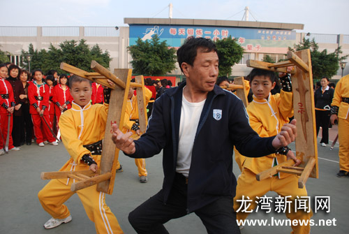 日前,龙湾区武术协会南拳分会会长胡松青将南拳套路、动作进行改进,引入天河中学,作为该校的“第二课堂”,深受学生欢迎。据了解,去年我区提出在学校实施“文体2+1”,要求每个学生至少要掌握二项体育技能和一项艺术特长。图为胡松青在教学生练拳。叶康远摄