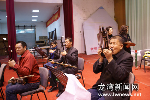 图为龙湾民乐团成员在排演节目。