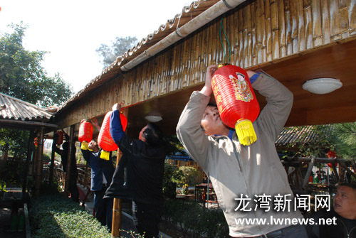 图为灵昆一农家乐装扮一新,营造春节氛围,迎接游客。
