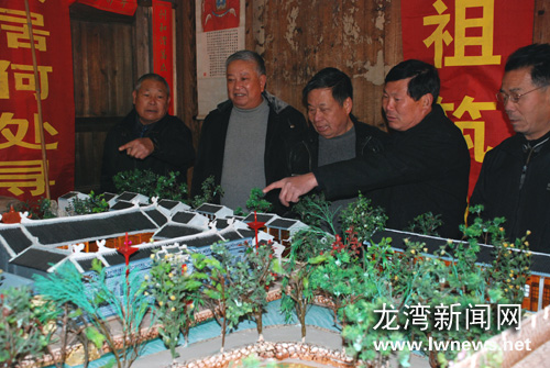 图为永昌堡英桥王氏族人在始祖故居模型前驻足观看。叶康远摄