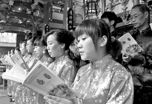 ▲众人诵读论语的场景。刘伟王鹏摄