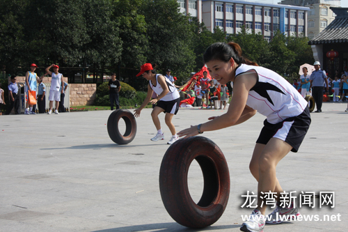 图为罗东锦苑社区举办迎国庆“邻里好赛珍宝”推轮胎趣味跑活动。叶康远摄