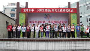 近日,龙湾区永中一小举行了首届“阳光男孩·女孩”颁奖活动,全校52名经过层层评选出来的“阳光学生”在全校老师和同学的注目下,自豪地走上领奖台,从自己的爸爸妈妈手中接过“阳光”奖状和“阳光徽章”。