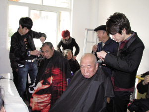 上午8时30分,20多名网友们来到福利院。来自“美乐美发”的美发师们带来了美发工具,为老人们理发,86岁的的孙阿公留了一辈子的分头,这次他希望能够给自己理个好看的小平头,清清爽爽过新年,美发师满足了他的愿望。