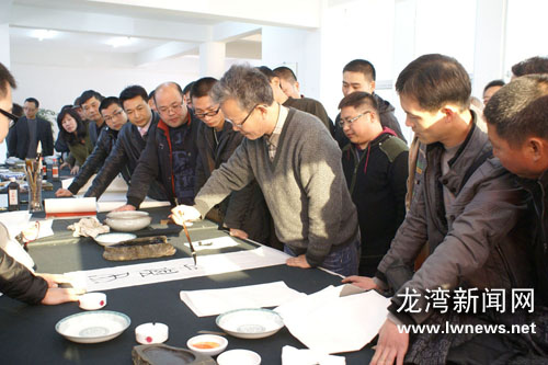 图为书画名家在创作。罗峰艺社提供