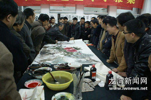 龙湾新闻网讯1月3日,龙湾区罗峰艺社抚月堂在我市八大重点主题文化公园之一的河泥荡文化公园举行揭牌仪式。我市林剑丹、戴宏海、陈天龙等100多位书画名家出席。抚月堂成为该文化公园内一个新的文化景点和文化活动场所。仪式后,书画名家还聚集在罗峰艺社沙城社开展笔会活动。 罗峰艺社创办于1995年,初名“白鱼沙龙”,1998年改为现名。艺社以研究与创作书画、交流心得、培养书画新人、挖掘乡邦文献为宗旨,以“弘扬礼乐、扎根乡间、传承文脉、学艺兼修”为立社方针。并不定期举办雅集,邀请名家讲座,策划各种艺事等活动。据了解,目前有社员24人,艺术类别涉及书法、篆刻、国画、油画、水彩、版画、漆画、装帧及设计。艺社社员均为龙湾籍,大多数社员出生于上世纪70年代,有地方文艺骨干、公务员、教师、企业家等。许多社员还到中央美术学院深造过,社员作品曾多次在全国、省市书画比赛中获奖。(丁欣华)