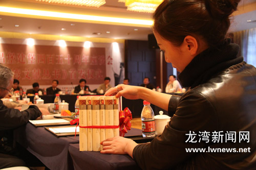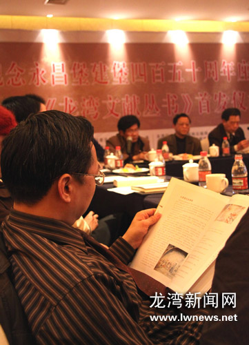 龙湾新闻网讯2月25日,我区召开纪念永昌堡建堡450周年座谈会暨《龙湾文献丛书》首发仪式。据悉,《龙湾文献丛书》第一辑有《嘉靖永嘉县志》、《英桥王氏诗录》、《普门张氏史料综录》、《王毓英集》、《七家诗选》共五部,现已出版前两部,明年出版后三部。图为首发仪式上一学者饶有兴致地翻阅丛书。王鹏摄