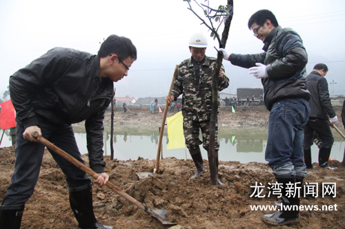 龙湾新闻网讯又到一年一度植树节。日前,区四套班子领导以及机关部门工作人员200多人,带头来到天河镇金沙河上游参加义务植树劳动,倡导全区广大群众积极投身义务植树活动,为建设绿色龙湾出力。 当天下午1点多,金沙河畔的植树点现场,呈现出一派生机勃勃的春日景象。区领导王祖焕、陈玲玲、徐国信等挥动铁锹,扶苗培土、踩实浇水,合力栽下一株株树苗。据统计,当天共种下樟树、冬青等树苗400多株,为滨海城区再添一抹新绿。区领导带头植树,带动了全民植树热情。据悉,今年我区将深入开展以林业应对气候变化为主题的“关注森林”一系列绿色创建活动,确定3月份为“绿化造林月”本周为“义务值树周”,启动“千校万人同栽千万棵树行动”活动,深入推进全民义务植树。区林业部门有关人员介绍,去年全区共有8万群众参加义务植树活动,植树15万株。 另悉,随着绿色龙湾建设步伐加快,今年,我区将重点实施生态公益林、通道绿化、沿海防护林带和生物防火阻隔带等林业工程。其中,沿海防护林带建设按照沿海、平原、山地三道防线的总体布局,投资220万元,完成362亩国家新增投资第四批防护林工程建设任务。(苏静静)