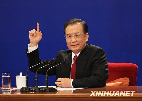 温家宝:你提到一个让我感到非常担心的问题。我曾经讲过,如果发生通货膨胀,再加上收入分配不公,以及贪污腐败,足以影响社会的稳定,甚至政权的巩固。处理好经济发展、调整结构和管好通胀预期这三者的关系,是一件非常困难的事情。