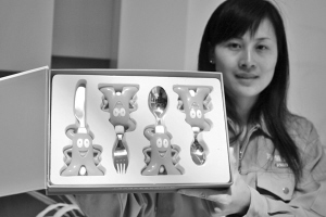 餐具与“世博元素”能擦出何种火花?记者带着疑问来到浙江洁瓴实业有限公司,一看到“海宝”餐具,困惑就解开了。这套餐具有4位“成员”,分别是一副刀叉和一对不同尺寸的调羹,每位“成员”配备专属的蓝色“海宝”造型底座。该公司总经理施艳波向记者阐述了其“玩具+餐具”的设计理念:“设计以儿童餐具定位,所以考虑到孩子吃饭的特点,配备了可增加食欲的淡黄色塑料柄,再植入有‘海宝陪你吃饭’的概念。”据悉,1500套餐具将作为世博礼品赠送给中外来宾。