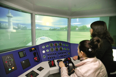 学员在全景式游艇模拟驾驶室里“驾”着游艇在瓯江上畅游,窗外的景色都是瓯江两岸的3D景观。赵 用摄