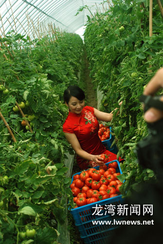 游客在灵昆蔬菜基地里采摘西红柿