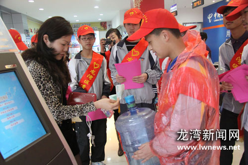 龙湾新闻网讯近日,由团区委、区少工委倡议的“捐一元钱、献一瓶水”活动在永中街道罗东街举行。路过的市民纷纷慷慨解囊,为灾区献上绵薄之力。据悉,为期半天的捐款活动共募得2000多元。图为一名女士在志愿者的倡议下为灾区献爱心。王鹏摄