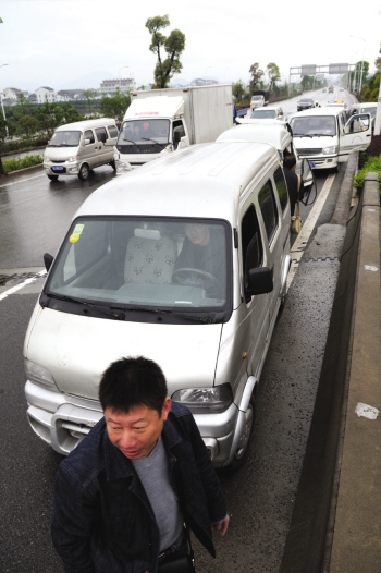 四辆面包车加一辆奥拓车 瓯海大道发生五车连环撞