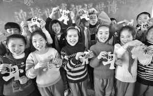 昨天,龙湾区永兴第一小学学生以上海世博会吉祥物海宝等图案为素材,剪刻成一幅幅剪纸作品,表达祝福和期待之情。据悉,永兴一小从2005年开始,将剪纸作为学生特色教育课,各班每周一节。