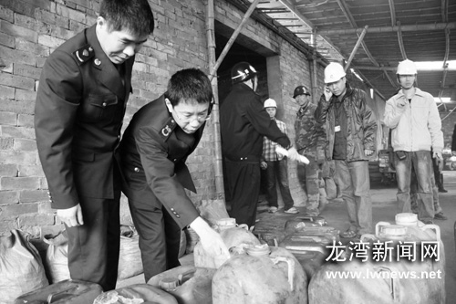 龙湾新闻网讯日前,区公安分局联合区工商、安检、环保等部门组成联合工作组,在全区范围内开展护城河二号行动,查缴剧毒危化物品和易制毒化学品。为做好上海世博会安保工作,有效净化社会环境开展的一次重拳活动。本次活动,重点对天河镇辖区使用情况展开检查。据初步统计,截止目前,联合工作组共查处6个点存在非法使用易制毒化学品,并当场传唤10名使用单位相关人员,扣押非法使用的易制毒化学品盐酸达2105公斤、硫酸65公斤、硝酸25公斤。王鹏摄