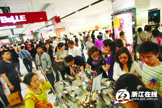 浙江在线04月30日讯上半年力度最大的促销大战开始了!今天是五一期间促销力度最大的一天,也是商家争夺市场份额的关键一天。随着杭州城东万象城和城西印象城的开业,杭城商战战线从原来武林商圈、湖滨商圈、吴山商圈的延安路一带,延伸至城东钱江新城和城西古墩路。同时,超市与家电卖场为拉动上半年的销售,也推出一系列大型促销,其吸引力不容小觑。今年五一杭城的商战,主场不再局限于延安路,而主角也不再仅仅是商场。