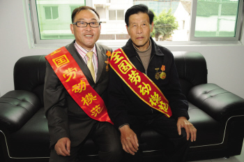 金显耀(左)和其父亲金宗伦。徐晓春摄