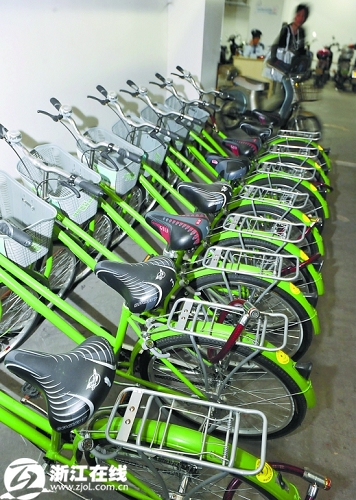 今年3月21日,海曙区文明办、区房管处共同发起,由海曙的7家物业公司出资,在该区时代广场、世纪广场、科创大厦等10个高档写字楼内,统一配备了一批公共自行车,供写字楼业主和员工在上班期间外出时免费使用。这项举措也受到了写字楼内员工的欢迎。