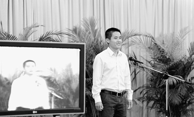 一位候选人现场演讲。记者邓圩摄