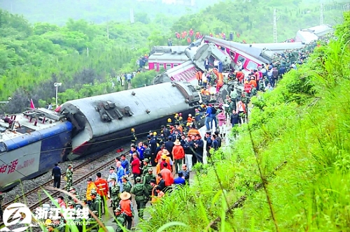 5月23日2时10分,因连日降雨造成山体滑坡掩埋线路,由上海南开往桂林的K859次旅客列车,在江西省境内沪昆铁路余江至东乡间发生脱线事故。