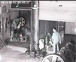 门口监控显示,当天上午6时49分,2名男子骑摩托车来到店门口。一男子下车走进店里,左顾右盼后拿起一捆铜圈搬上摩托车,快速离开现场,整个过程不到2分钟。其间,在门口玩的小黄见有生人进店,进店查看。而那男子见到小黄,表现镇定。