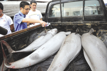 为何两只江豚会意外死亡?白洪鲍说,脱水是江豚死亡的主要原因,当然也不排除其他病因。