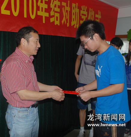 图为结对助学仪式上,慈善助学企业代表向受助学生捐助。叶康远 摄