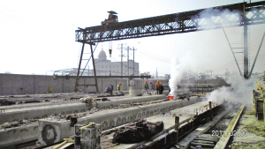 永梅大道上从南至北共有10座桥梁,桥梁板的用量在500多片。由于制作周期长、质量要求高,工人们一天只能完成2片大桥梁板或4片小桥梁板,这就必须要求与时间抢产量。目前,通过春节加班加点,预制桥梁板已完成总用量一半以上。届时,一旦使用,就能第一时间运往施工现场,确保工期。