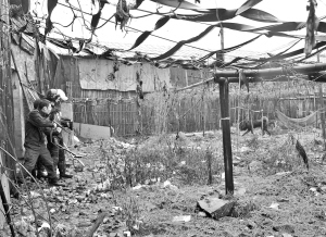 从他提供的视频上可以看到,藏獒走进荒地后,十多名特巡警大队民警即从楼房两侧进行包抄。在疏散周边房屋、工棚人员后,他们将藏獒包围在这处荒地上,并在东西两侧设置了两名持枪特警。