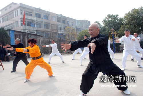 龙湾新闻网讯龙湾南拳自去年在市运会上“闪亮登场”以来,这项武术运动就引起了广泛重视,特别是在南拳之乡天河镇,龙湾南拳更成为当地群众喜爱的健身运动。近日,记者来到天河镇,近距离接触了南拳这项武术运动。 南拳在龙湾有着广泛的群众基础。根据已知资料记载,南拳传入龙湾可能始于清末民初。当年南拳风靡浙南地区时,龙湾三甲(天河镇)出现“人人习武,家家练南拳”的情景,从此,南拳在这块土地上生根发芽,遍地开花。如今在天河三甲,上至85岁的耄耋老者,下至15岁的少年,不管男女老少,都有练习南拳的风气。在三甲南拳会所名誉会长王成杰的家里,他和师兄弟们为记者演示了南拳拳法、短棍、长棍、大刀、推手等武艺。王成杰说:“我们三甲南拳拳种是由福建莆田南少林寺阿静法师传入,他先传给我爷爷,然后传给我。现在我们天河镇练习南拳的人有1300人左右,其中我们会所就有600多人。”王成杰告诉记者,为了传承南拳之精华,三甲南拳会所先后四次组织人员南下福建,探访南拳武术渊源,经过一番努力,三甲南拳与福建莆田市南少林研究会等单位建立了联系并进行武术交流。 今年83岁的三甲老人王挺森精神矍铄,他从13岁开始就习练南拳,如今,他对南拳的热情依然不减当年。谈起对南拳的理解,他兴致盎然,娓娓道来:“棒要拿得紧,脚步要站牢,打棒看棒头,打拳看拳头。”王挺森现场还给我们展示了一套拳法。当记者问到练拳对身体的好处时,老人谦虚地说:“练拳对人的精神状态有好处,对耳朵、眼睛都有好处,我现在一天不练拳,全身上次都不舒服。”南拳会所的武术爱好者说,王老虽然已是八旬高龄,但精气神还是很“猛”。从老人神采奕奕的言行举止中,习武给他带来的好处可见一斑。 据了解,近年来天河三甲南拳人才辈出,会所成员参加各类国际、国内武术比赛,屡屡获奖,其中会所组织的数百人集体南拳表演,更是打破了南拳表演人数的空白。随着强健体魄的理念逐渐普及,三甲南拳正以其独特的魅力吸引着周边群众的参与,同时,群众的广泛参与,对龙湾南拳的传承和发展起到巨大的推动作用。(叶康远)