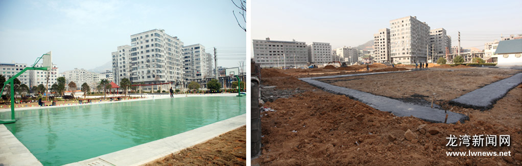 图为海城东门村休闲公园新(左)老(右)照片对比。