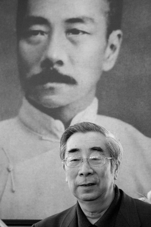 周海婴在鲁迅像前。 CFP/图