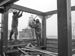 温州网讯龙湾江锦家园的个别业主,为追求花园洋房的“感觉”,圈占楼顶的公共空间,种上花草树木,建起亭台楼阁。4月8日,龙湾城市管理与行政执法局对该小区近千平方米的楼顶违章建筑进行强制拆除。
