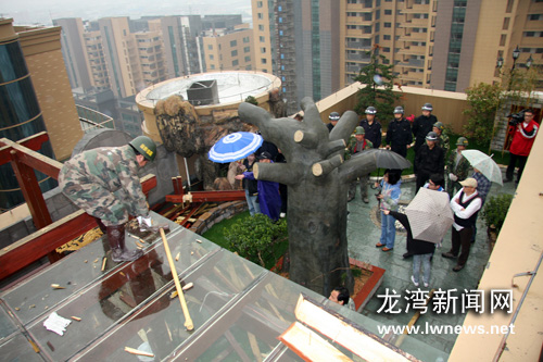 龙湾新闻网讯针对目前出现的一些住户在居民小区楼顶私自修建绿地花园的现象,4月8日,区城市管理与执法局组织专业人员拆除了近1000平米的楼顶绿地花园。 去年年底,区城市管理与行政执法局接到举报,称江锦花园有住户违规占用楼顶公共用地修建私人花园,经现场核实,执法局对违规住户下发整改通知书责令其恢复原貌,但仍有部分住户心存侥幸不予执行。为此,该局组织专业人员对这部分违规建筑进行了强制拆除。 在一楼顶现场,记者看到,这个颇具中式风格的楼顶花园,可谓“常年有花、四季有景,既能观花又能看景”。据执法人员介绍,业主大概花了20多万元来建这些楼顶花园。在楼顶一眼望去,江锦花园小区的其他几幢的楼顶都装修了类似的花园,而如今他们的空中花园的梦想也会因拆迁人员的锤子而化为乌有。 “主要问题是把楼顶的消防通道全部堵死,如果发生火灾会非常危险;此外,他们在楼顶修建亭子、玻璃房,将公共(空间)变为个人使用的场所,这是不允许的。”区城市管理与行政执法局直属中队中队长陈祥说。 据小区的一些业主反映,因为上楼顶的门被锁了起来,也没法上去晾晒,现在天气越来越热,小区居民想晒一下席子都找不到地方。据了解,江锦花园现有住宅楼十幢,其中有九幢楼顶都存在类似的违规现象。“个别户主公共意识比较淡薄,他们认为楼顶上这个地方是自己的,这违反了一个常识。楼顶属于公共空间,是公共所有的。下一步我们要加强巡逻,发现一起就拆除一起,同时加强对业主和物业公司的宣传力度,我们希望大家共同参与监督。”陈祥说。(叶康远)
