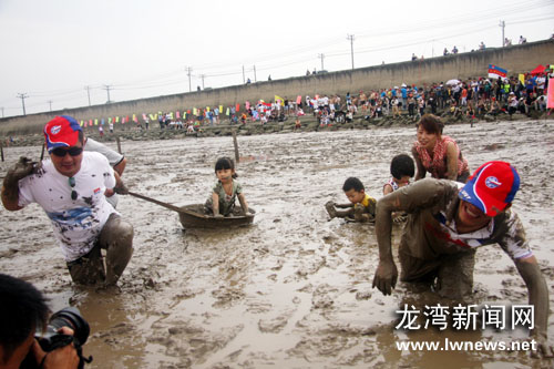 据本届滩涂运动会主办方——龙湾游泳协会会长孔繁林介绍,滩涂资源是龙湾的特色资源,随着人们生活水平的不断提高,回归自然的愿望越来越强烈,滩涂上的泥巴运动也得到了越来越多人的喜爱和参与。“一般我们都是海涂上长大的,好几十年没来这里了,而且许多远到而来的外地客人也很有兴趣,好像找回了童真,我们打算把这个项目打造成龙湾的健身品牌项目。”(叶康远)