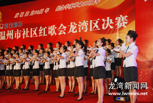 7月8日,庆祝建党90周年、辛亥革命100周年社区红歌会决赛在沙城街道五一广场举行。此次决赛共产生10支晋级队,他们将代表我区参加市社区红歌会比赛。叶康远摄