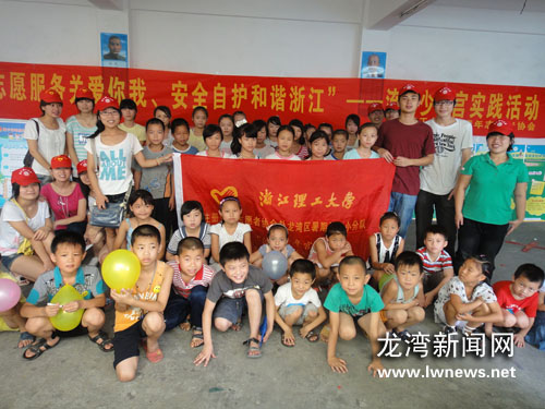 连日来,团区委、区消防大队、市交警支队三大队、区卫生局等单位联合志愿者服务队,组成“流动少年宫”,辗转蒲州、永中、永兴等街道,向成才、向阳等民工子弟学校和蒲江、罗东锦苑等社区的2000多位青少年学生传授安全自护知识,发放宣传手册3000册,提高应对危机能力。图为浙江理工大学暑期青少年安全自护专项志愿服务队队员在永兴开展活动后与青少年学生合影留念。陈芳张赛超摄