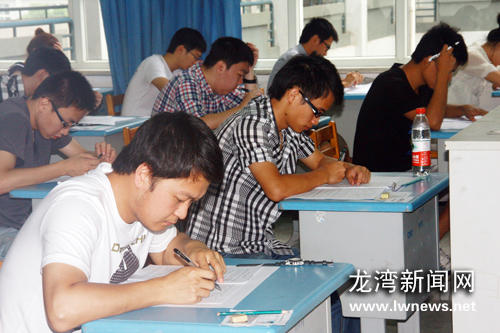 龙湾新闻网讯8月23日上午,2011年龙湾区事业单位公开招聘考试在龙湾中学举行,900多名考生共同竞聘57个职位。据悉,本次笔试结束后,将根据考试成绩按招聘岗位1:1比例确定参加体检、考察人员。相关具体事宜考生可上龙湾人力资源网查询。叶康远摄