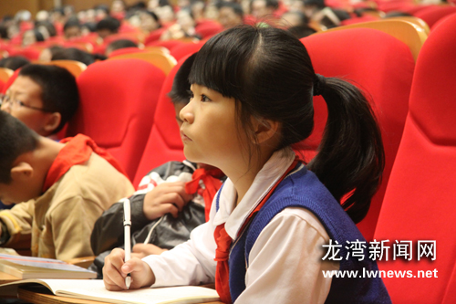 龙湾新闻网讯10月26日,市“道德模范基层巡讲”报告团到我区举行了专场报告会。会上,6个我市近年来精神文明建设领域涌现的先进典型事迹深深打动现场的新龙湾人、居民和学生代表等600多人。图为报告会上一学生凝神倾听的情景。王鹏摄