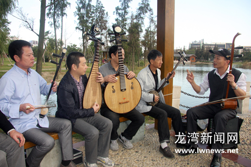 龙湾新闻网讯在龙湾,活跃着一支由农民、企业家、教师、新温州人自发组建的民间乐团。现在这支有30多名队员的民乐团,已成了我区社区、农村群众文化生活的一道靓丽风景。近日,记者走进这个民乐团,与他们进行了“零距离”接触。 当天下午,一曲管弦乐合奏《龙湾在腾飞》,在永中河泥荡公园吸引了大批附近居民前往欣赏。这曲旋律欢快喜悦的《龙湾在腾飞》由民乐团团员自编自排。团员张则虎今年60岁,曾是面朝黄土背朝天的“泥腿子”,当过天河镇二甲村的党支部书记。12年前,他组织当地10位爱好管乐的村民,建起了天河夕阳红宣传队,这就是“龙湾民乐团”的前身。乐队成立之初除了自娱自乐,还为来村表演的戏曲团伴奏。 “我是拉扬琴的,二胡、笛子、萧也会一些,对我们来讲,年纪大了主要是找个乐趣,不过我们还打算把龙湾的农村文化发扬光大。”张则虎说。民乐团成员现在由全区各街道30多名村民组成,平均年龄超过50岁,其中有4位女性。民乐团成员有退休的村党支部书记、退伍军人、养殖户,也有企业主,新近增加的还有新龙湾人。来自湖北的张静是乐团的主唱,她说,对音乐的爱好使她成为乐团的一员。 张则虎说,最让他满意也是最让他感动的就是乐团的团员。“他们都有自己的事业和家庭,平常训练和演出不要一分钱,当然更不会有人给他们发工资,他们还要自备乐器,但每次排练却风雨无阻,很少有人缺席。”他清楚地记得,有一次,下了一天的大雨,他本以为会有很多人不来了,但当他赶到排练室发现,除了个别请过假的外,大家都来了。“装乐器的带子、团员们的衣服都湿透了,雨水顺着裤脚往下滴。”当时的情景至今历历在目。 谈到乐团目前所面临的困难,张则虎说资金是最大的难题。虽然说团员们都是不计报酬免费出演,但是乐团的存在和发展仍离不开资金的支持,而且还是一笔不小的开支。“训练场地、乐器更新、出门演出等等,都需要钱,幸好我们得到了街道文化活动中心的大力支持,使得乐团组建得以顺利进行。”他希望社会能给予乐团更多的关注和支持。“我们的机制是新的,我们在探索,我们坚信乐团会越来越壮大。”(叶康远)