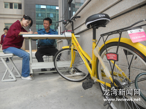 龙湾新闻网最近,浙江泰来富利康鞋业有限公司员工,每到中午、黄昏时骑着自行车往返于南龙步行街与厂区进行购物。骑自行车出行,可以节能减排、倡导绿色交通,已越来越受到国人喜爱。此次,泰来购置100辆自行车供员工免费租用。员工只要凭本人厂牌和身份证,即可免费租用,在规定时间内归还车辆,深受员工们喜欢。图为一名员工在作租用前的登记手续。朱继亮摄